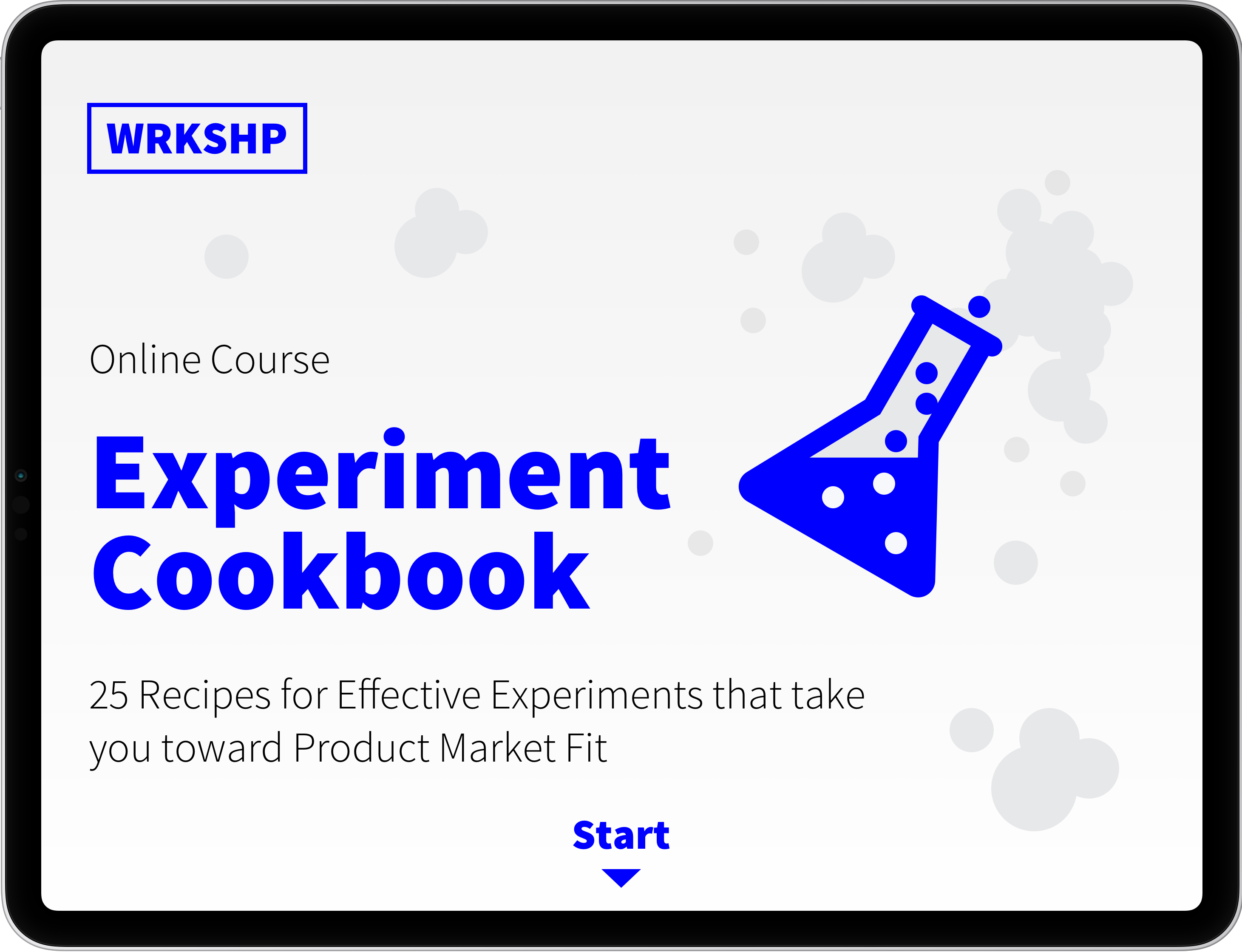 Lists the 25 experiments from the Experiment Cookbook, including landing pages, fake buttons, pricing experiments, and more