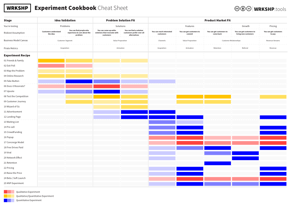 What Lean Startup Experiment should you run next? Answer that question once and for all with this cheat sheet.